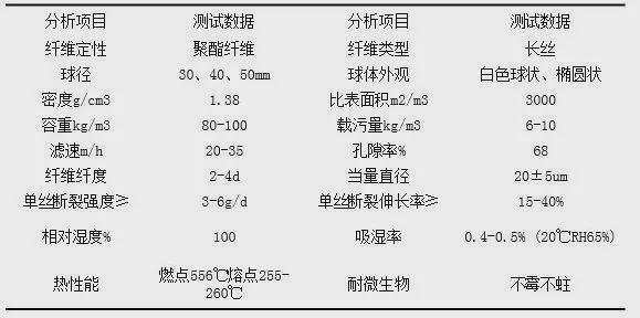 表2纖維球?yàn)V料主要技術(shù)指標(biāo)